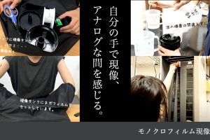 ※当日の持ち込みは35mmフィルムカメラでも中判フィルムカメラでもOKですが、当日お渡しするネガフィルムは35mmとなりますので予めご了承ください。講座内でフィルム装填の練習を行いますが、ダミーの35/120のフィルムは教室に準備しておりますので、お渡しする新しいネガフィルムは練習後にその場で装填していただいても結構ですし、お持ち帰りいただいても結構です。